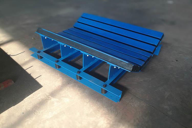 緩沖床的橡膠采用進(jìn)口天然橡膠、橡膠彈性高、含膠量大、橡膠密實度高、抗拉強(qiáng)度大、能大程度上吸收下落物料的沖擊力,可有效的避免物料下落時對輸送帶的沖擊。緩沖床床體表面采用高耐磨分子材料,分子量大于650萬,光滑表面,摩擦系數(shù)小,耐磨性好,使得輸送帶運行時的摩擦力降到很低,廣泛用于礦山開采,礦井下巨型煤塊輸送。